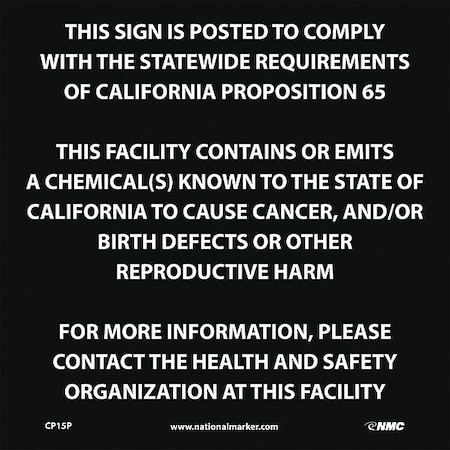 NMC CP15P, California Proposition 65 Sign (Pack of 10 pcs)