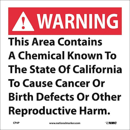 CP4P National Marker California Prop 65, Warning Sign -This Area Contains a Chemical, 10 Inches x 10 Inches Ps Vinyl