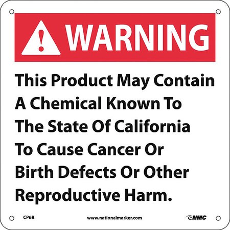 CP6R National Marker California Prop 65, Warning Sign -This Product May Contain a Chemical, 10 Inches x 10 Inches Rigid Plastic