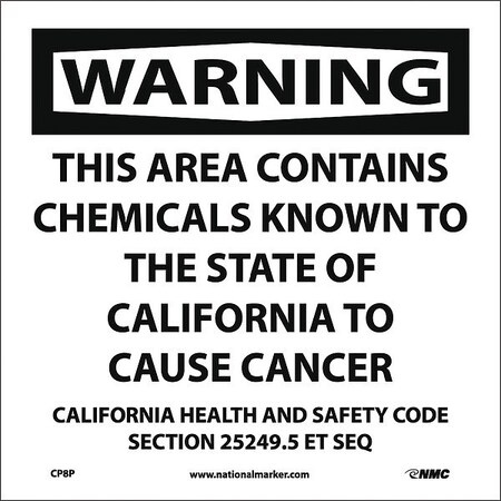 CP8P National Marker California Prop 65, Warning Sign -This Area Contains Chemicals, 10 Inches x 10 Inches Ps Vinyl
