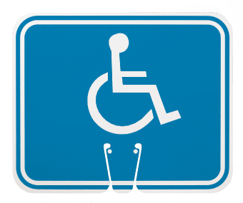 - Visibility: the sign has the graphic with a stick figure in wheelchair printed on it that makes the message easily understandable. The use of contrasting colors gives the sign clear visibility even in poor lighting conditions and from a distance