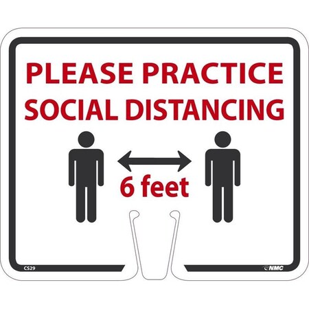 NMC CS29 Please Practice Social DISTANCING Cone Sign, 10.375 X 12.625 X 0.085, Rigid Plastic .050