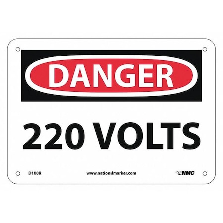 NMC D100R OSHA Sign, Legend "DANGER - 220 VOLTS", 10" Length x 7" Height, Rigid Plastic, Black/Red on White