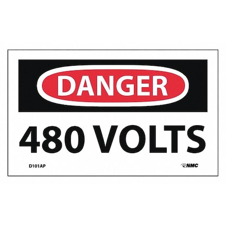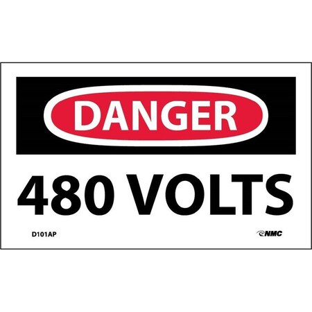 NMC D101AP OSHA Sign, Legend "DANGER - 480 VOLTS", 5" Length x 3" Height, Pressure Sensitive Adhesive Vinyl, Black/Red on White (Pack of 5)