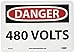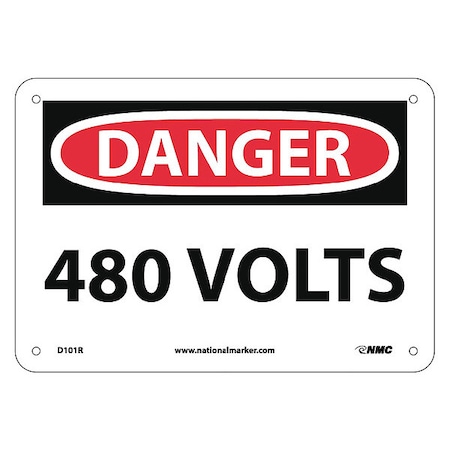 NMC D101R OSHA Sign, Legend "DANGER - 480 VOLTS", 10" Length x 7" Height, Rigid Plastic, Black/Red on White