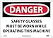- Specifications: the graffiti-proof DANGER - SAFETY GLASSES MUST BE WORN WHILE OPERATING THIS MACHINE Signage is designed using aluminum and measures 14in. length by 10in. height