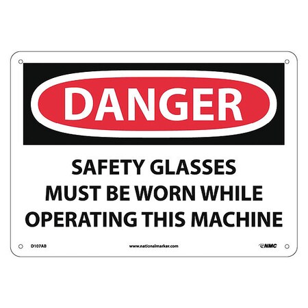 NMC D107AB DANGER - SAFETY GLASSES MUST BE WORN WHILE OPERATING THIS MACHINE Signage - 14in. x 10in. Aluminum Danger Signage, Black/White Text on White/Red Base