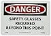 | Feature | Header "DANGER" and legend "SAFETY GLASSES REQUIRED BEYOND THIS POINT" |