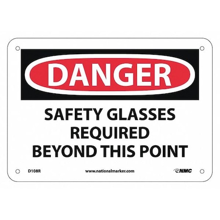 NMC D108R DANGER - SAFETY GLASSES REQUIRED BEYOND THIS POINT Sign - 10in. x 7in. Rigid Plastic Danger Signage with Black/Red on White