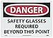 | Feature | Header "DANGER" and legend "SAFETY GLASSES REQUIRED BEYOND THIS POINT" |