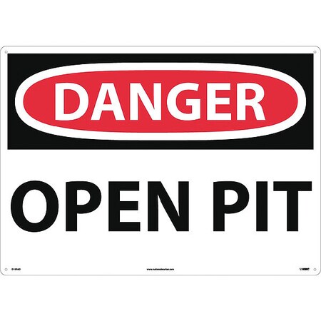 NMC D109AD OSHA Sign, Legend "DANGER - OPEN PIT", 28" Length x 20" Height, Aluminum, Black/Red on White