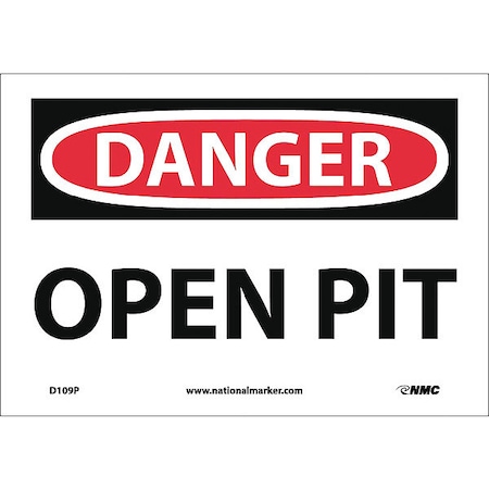NMC D109P DANGER - OPEN PIT Sign - 10 in. x 7 in. PS Vinyl Danger Signage with Black/White on White/Red