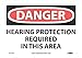 | Feature | Header "DANGER" and Legend "HEARING PROTECTION REQUIRED IN THIS AREA" |
