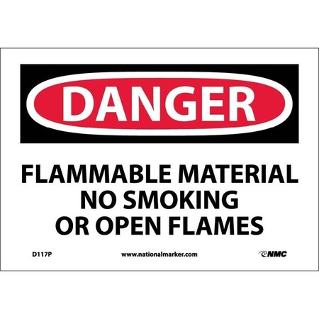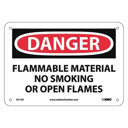 NMC D117A DANGER - FLAMMABLE MATERIAL NO SMOKING OR OPEN FLAMES Sign - 10 in. x 7 in., Red/Black Text on White, Aluminum Danger Sign