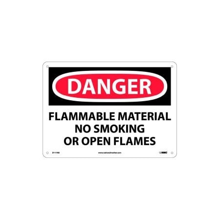 NMC D117AB DANGER - FLAMMABLE MATERIAL NO SMOKING OR OPEN FLAMES Sign - 14 in. x 10 in., Red/Black Text on White, Aluminum Danger Sign
