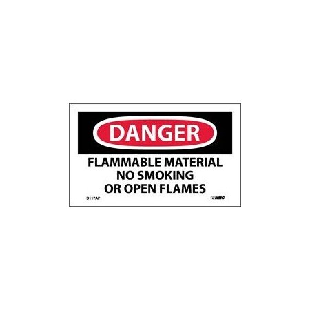 Danger Flammable Material No Smoking Or Open Flames Label, Pk5, D117AP