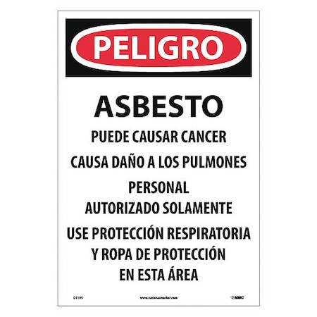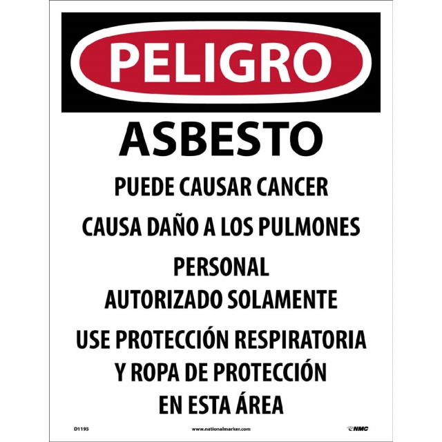 NMC D1195 PELIGRO - ASBESTO Puede CAUSAR Cancer Sign - 13 in. x 19 in. Paper Danger Label with White/Black Text on Red/White Base