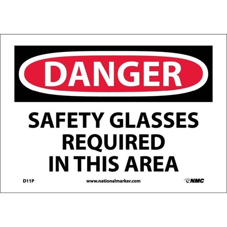DANGER, SAFETY GLASSES REQUIRED IN THIS AREA, 10X14, PS VINYL