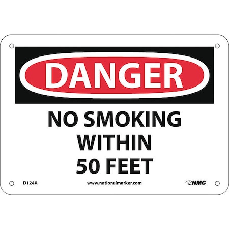 NMC D124A OSHA Sign, Legend "DANGER - NO SMOKING WITHIN 50 FEET", 10" Length x 7" Height, Aluminum, Black/Red on White
