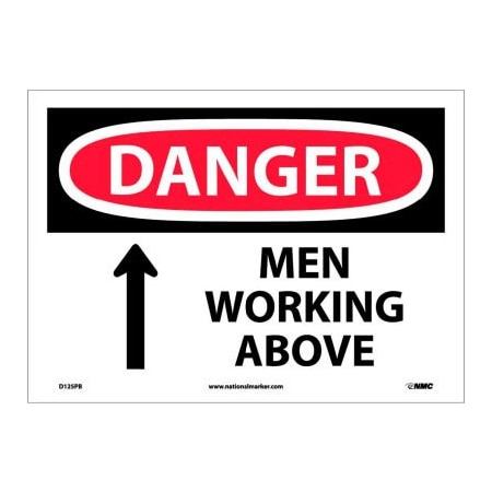 NMC D125PB DANGER - MEN WORKING ABOVE - 14 in. x 10 in. PS Vinyl Danger Sign with Graphic, White/Black Text on Red/ White Base