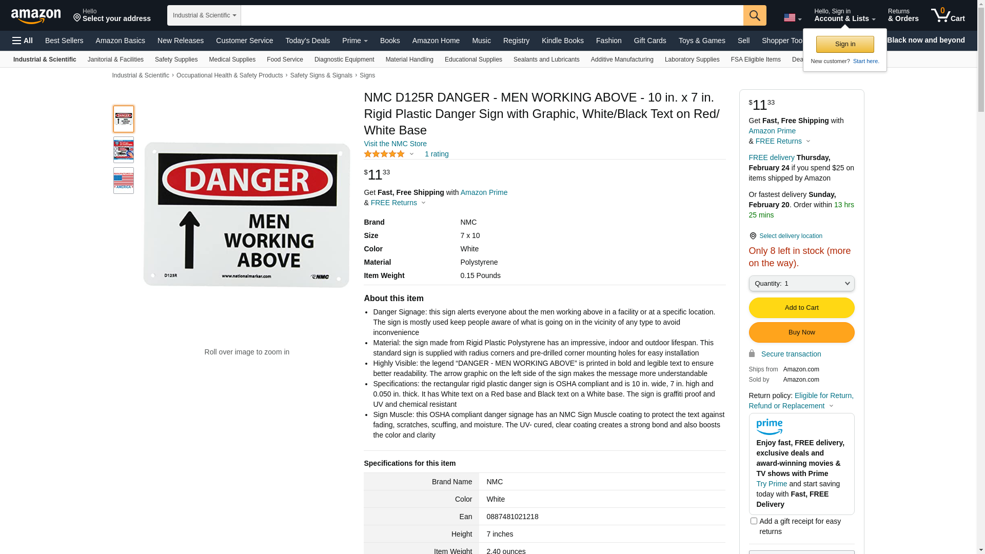 NMC D125R OSHA Sign, Pack of 50 pcs