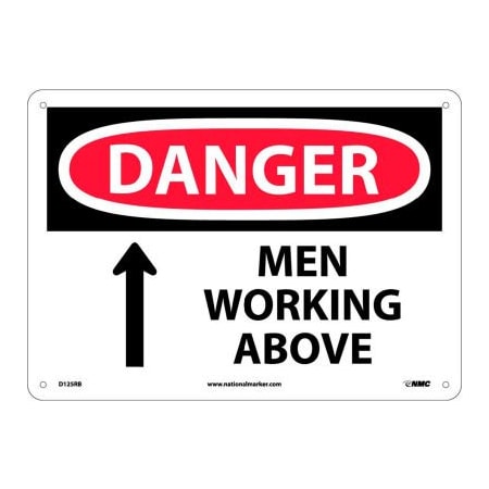 NMC D125RB DANGER - MEN WORKING ABOVE - 14 in. x 10 in. Rigid Plastic Danger Sign with Graphic, White/Black Text on Red/ White Base