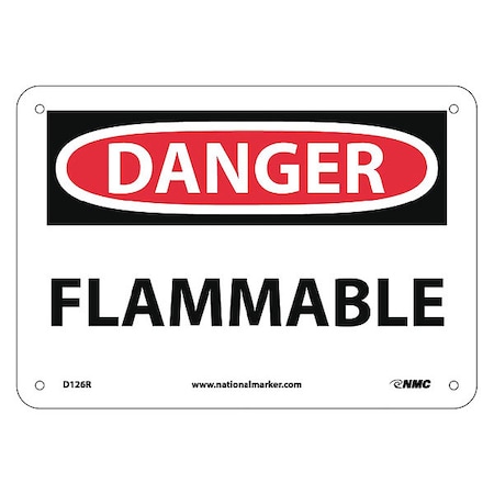 NMC D126R DANGER – FLAMMABLE – 10 in. x 7 in. Plastic Danger Sign with White/Black Text on Red/White Base