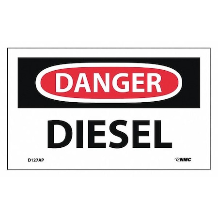 NMC D127AP OSHA Sign, "DANGER DIESEL", 5" Width x 3" Height, Pressure Sensitive Vinyl, Black/Red On White (Pack of 5)