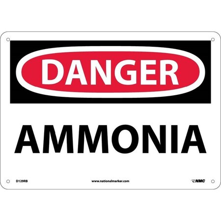 NMC D129RB OSHA Sign, Legend "DANGER - AMMONIA", 14" Length x 10" Height, Rigid Plastic, Red/Black on White