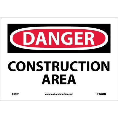 NMC D132A DANGER - CONSTRUCTION AREA Sign - 10 in. x 7 in. Aluminum Danger Signage, Black/White Text on White/Red Base