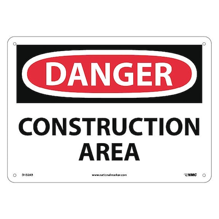 NMC D132AB DANGER - CONSTRUCTION AREA Sign - 14 in. x 10 in. Aluminum Danger Signage, Black/White Text on White/Red Base