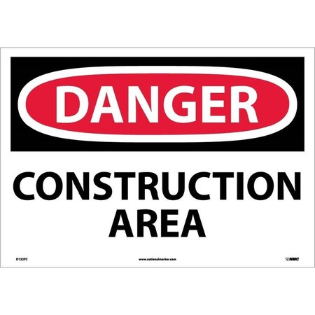NMC D132AC OSHA Sign, Legend "DANGER - CONSTRUCTION AREA", 20" Length x 14" Height, Aluminum, Red/Black on White