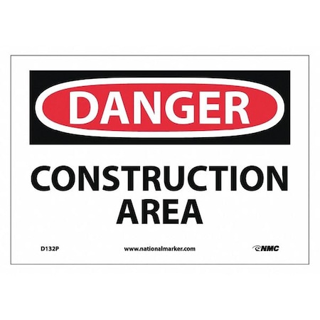 NMC D132P DANGER - CONSTRUCTION AREA Sign - 10 in. x 7 in. PS Vinyl Danger Signage, Black/White Text on White/Red Base