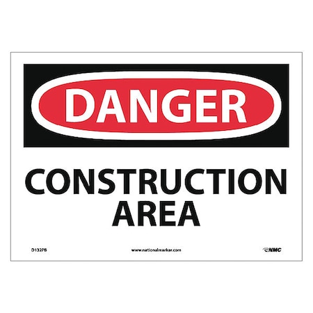 NMC D132PB DANGER - CONSTRUCTION AREA Sign - 14 in. x 10 in. PS Vinyl Danger Signage, Black/White Text on White/Red Base