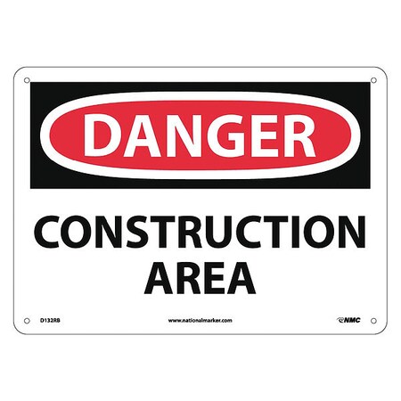 NMC D132RB DANGER - CONSTRUCTION AREA Sign - 14in. x 10 in. Rigid Plastic Danger Signage, Black/White Text on White/Red Base