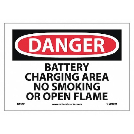 NMC D133P DANGER - BATTERY CHARGING AREA NO SMOKING OR OPEN FLAMES Sign - 10 in. x 7 in., Red/Black Text on White, PS Vinyl Danger Sign