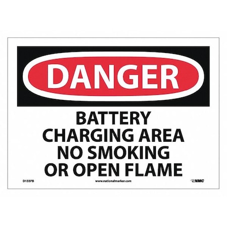 NMC D133PB DANGER - BATTERY CHARGING AREA NO SMOKING OR OPEN FLAMES Sign - 14 in. x 10 in., Red/Black Text on White, PS Vinyl Danger Sign