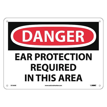 NMC D134AB DANGER - EAR PROTECTION REQUIRED IN THIS AREA Sign - 14 in. x 10 in. Aluminum Danger Sign, Black/White Text on White/Red Base