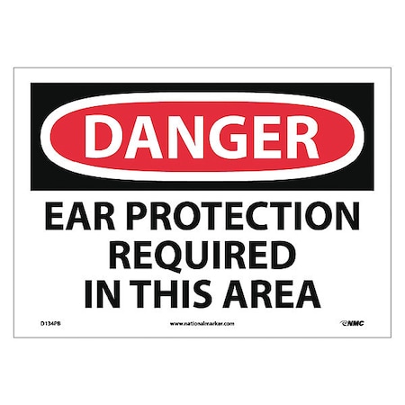 NMC D134PB DANGER - EAR PROTECTION REQUIRED IN THIS AREA Sign - 14 in. x 10 in. PS Vinyl Danger Sign, Black/White Text on White/Red Base