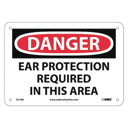 NMC D134R DANGER - EAR PROTECTION REQUIRED IN THIS AREA Sign - 10 in. x 7 in. Rigid Plastic Danger Sign, Black/White Text on White/Red Base