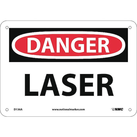 NMC D136A OSHA Sign, Legend "DANGER - LASER", 10" Length x 7" Height, Aluminum, Black/Red on White