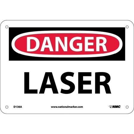 NMC D136R OSHA Sign, Legend "DANGER - LASER", 10" Length x 7" Height, Rigid Plastic, Black/Red on White