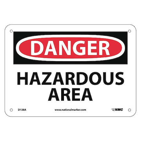 NMC D138A DANGER - HAZARDOUS AREA -10 in. x 7 in. Standard Aluminum Danger Sign, White/Black Text on Red/White Base