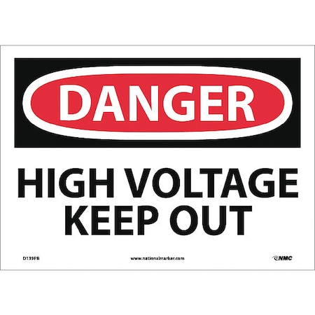 NMC D139PB DANGER - HIGH VOLTAGE - KEEP OUT - 14 in. x 10 in. PS Vinyl Danger Sign with White/Black Text on Red/White Base