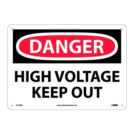 NMC D139RB OSHA Sign, Legend "DANGER - HIGH VOLTAGE KEEP OUT", 14" Length x 10" Height, Rigid Plastic, Black/Red on White