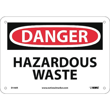 NMC D140R OSHA Sign, Legend "DANGER - HAZARDOUS WASTE", 10" Length x 7" Height, Rigid Plastic, Black/Red on White