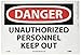 - Specifications: the DANGER - UNAUTHORIZED PERSONNEL KEEP OUT is designed using PS Vinyl and measures 14 in. length by 10 in. height