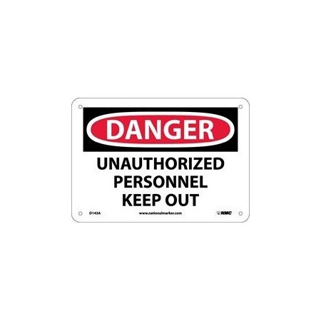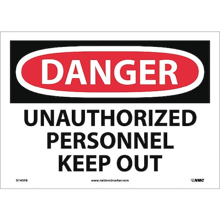 NMC D143PB DANGER - UNAUTHORIZED PERSONNEL KEEP OUT Signage - 14in. x 10in. Danger Signage with PS Vinyl, Black/White Text on White/Red Base