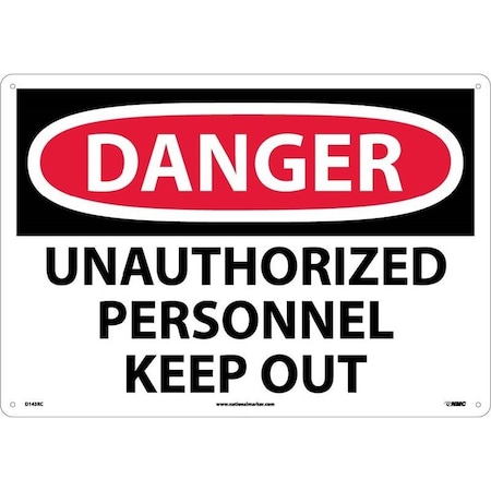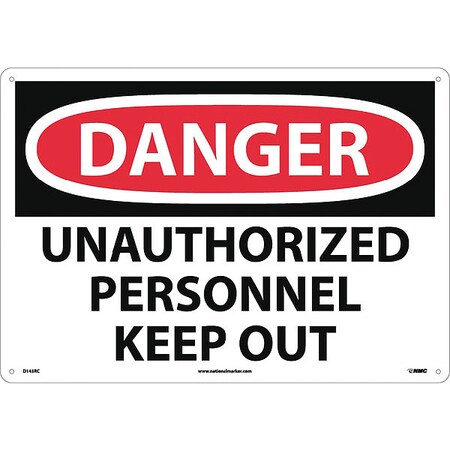 NMC D143RC OSHA Sign, Legend "DANGER - UNAUTHORIZED PERSONNEL KEEP OUT" with Graphic, 20" Length x 14" Height, Rigid Plastic, Black/Red on White