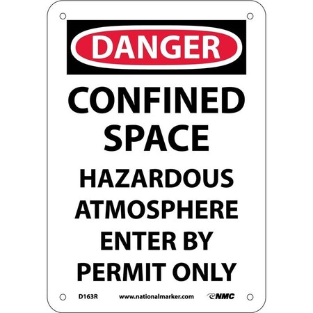 NMC D163R OSHA Sign, Legend "DANGER - CONFINED SPACE HAZARDOUS ATMOSPHERE ENTER BY PERMIT ONLY", 7" Length x 10" Height, Rigid Plastic, Red/Black on White
